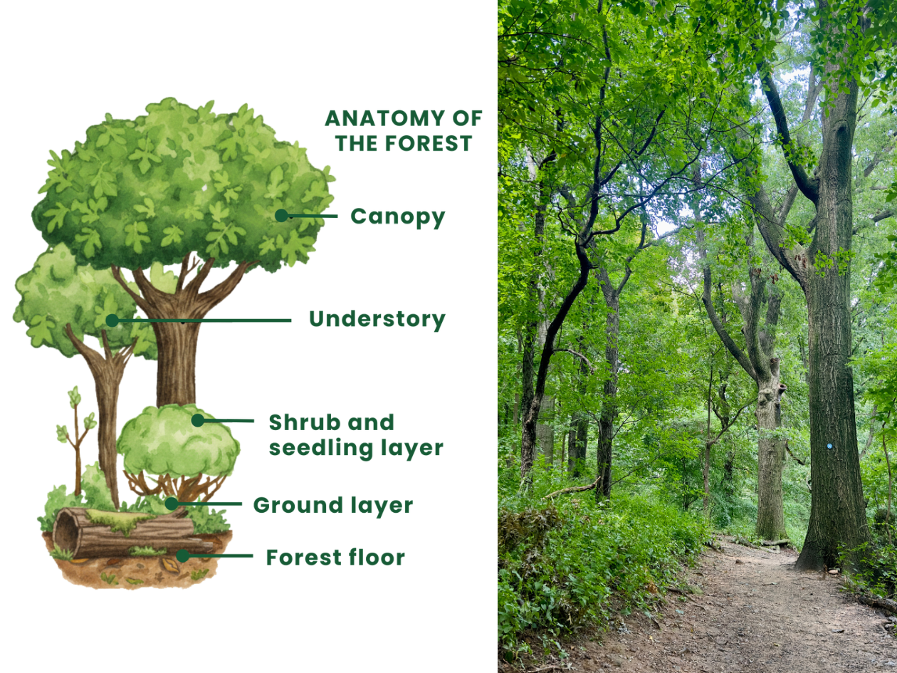 By removing fast-growing vines, shrubs and trees and clearing debris, we are making room for new, native trees and vegetation to re-establish this forest’s ecological balance. This restoration promotes biodiversity, strengthens climate resilience, and will become a welcoming green space for the community.
