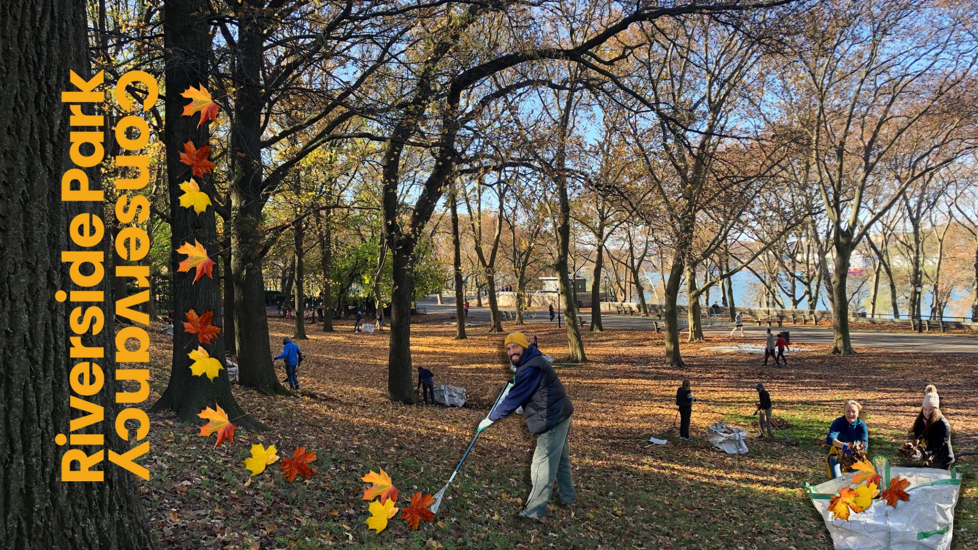 Join Riverside Park Conservancy to rake leaves off of our pathways, high-traffic areas, and lawns to prevent them from clogging storm drains, making pathways slippery, and smothering the grass.