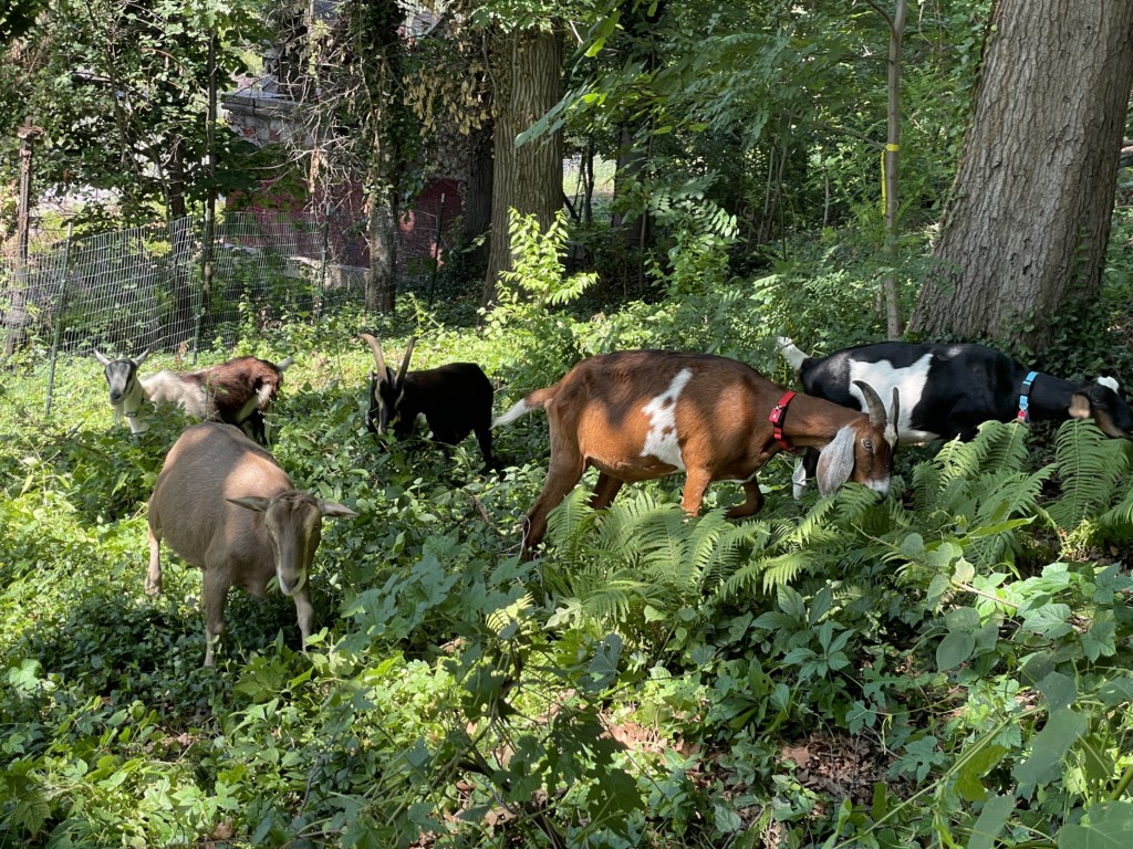 Over the past five summers, the goats have successfully cleared the slopes at 120th Street, allowing the human staff to install native understory and large trees, protecting the mature tree canopy. This past summer, the hard-working goats were assigned a new job site at West 143rd Street, where they munched on poison ivy and other invasive plants. Preparations for this site, including a new goat enclosure, were possible thanks to the support of Amazon, Con Ed, and a generous anonymous neighbor.