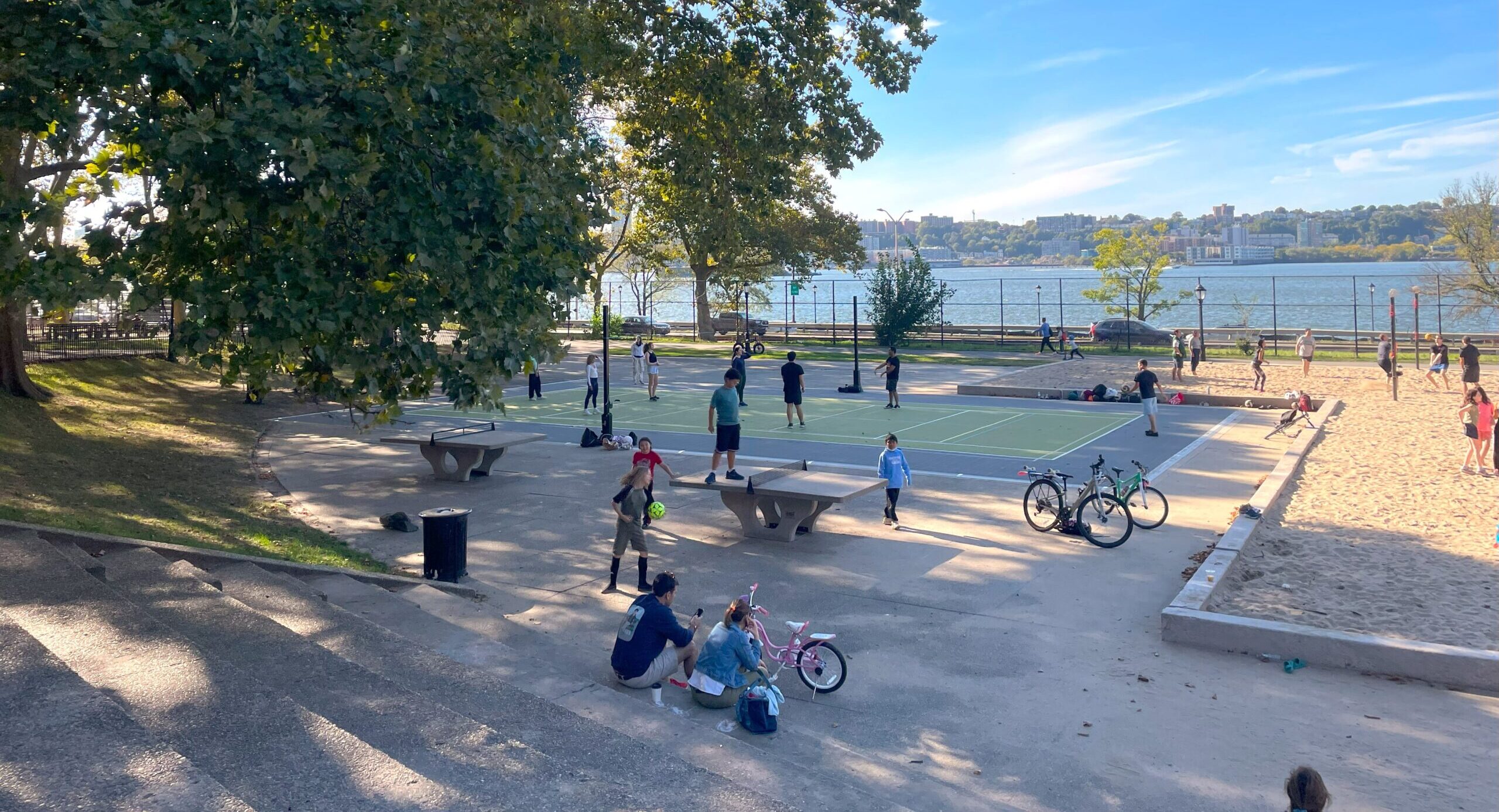 Tables are located on the lower level of the park at Hudson Beach. Please note that all pickup games are on a first come, first served basis.